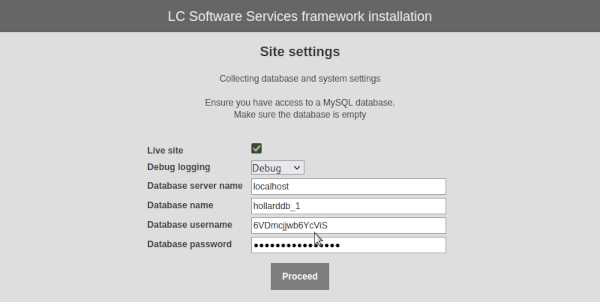 You now have to type in the database settings and other site settings. Check the Live site checkbox to make sure the site is configured as a live site, and not a development site.