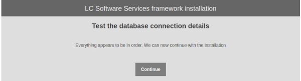 This screen will confirm if the database details have been entered correctly and the system is able to connect to the database.
